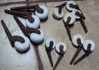 12 Vtg Porcelain Roller Wheel Casters Furniture Wheels Collectible antiques