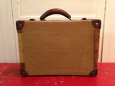 Title (ebay affiliate link): RARE Antique 1900s -1920s Woven Caned Wheat Grass Train Suitcase,Leather