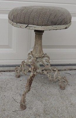 ANTIQUE PIANO/ORGAN STOOL CAST IRON BASE
