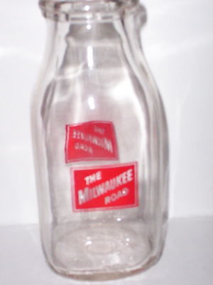 THE MILWAUKEE ROAD RAILROAD 1/3 QUART MILK BOTTLE