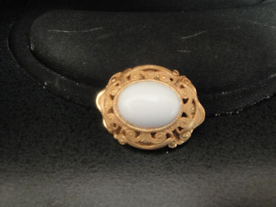 Vintage Miriam Haskell Milk Glass Signed Brooch
