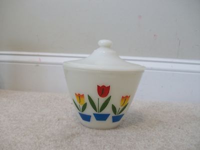 Vtg Fire King Milk Glass Grease Jar w Lid~Tulip Design