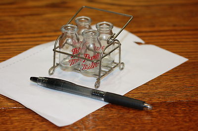 Set of 4 Miniature Milk Bottles w/carrier "PURE MILK"