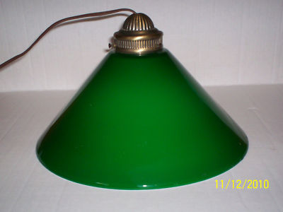 VINTAGE GREEN GLASS MILK GLASS HANGING LAMP SHADE POOL