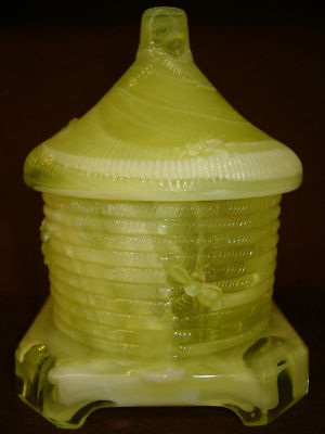 VASELINE MILK SLAG URANIUM ART GLASS HONEY BEE JAR POT
