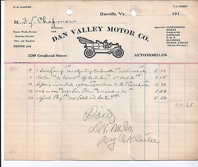 Fancy bill head 19111 Danville Virginia Oakland E.M.F. Flander Harley Davidson