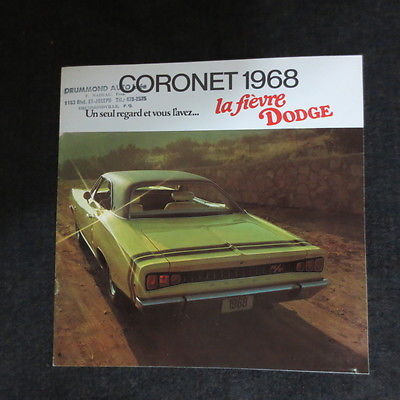 Title (ebay affiliate link): 1968 Dodge Coronet original brochure. French language only Canadian market
