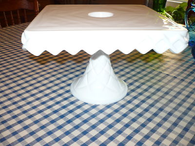 Milk Glass Quare Cake Stand Plate with rumroll