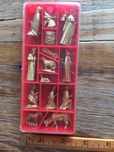 Title (ebay affiliate link): Vintage Tiny Miniature Germany Mini Nativity Set Christmas Holiday Gold Plastic