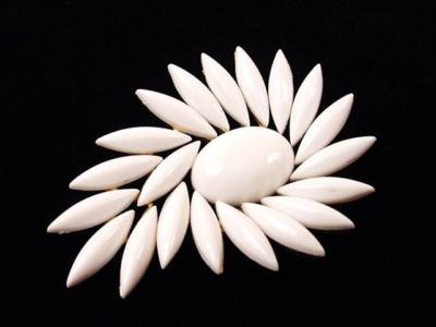 FAB VINTAGE SIGNED CROWN TRIFARI MILK GLASS BROOCH PIN