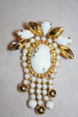 VINTAGE JULIANA REVERSED RHINESTONE & MILK GLASS BROOCH