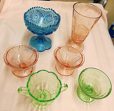 Title (ebay affiliate link): Mixed Lot 6 Pieces Depression and Pressed Colored Pattern Glass ESTATE FIND