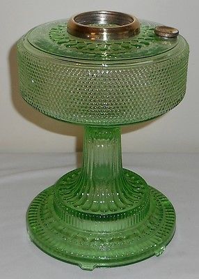 Title (ebay affiliate link): Pretty Ca. 1933 Green Crystal Glass Colonial Hobnail Aladdin Mantle Oil Lamp