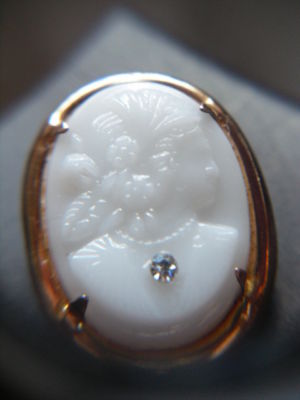 VICTORIAN MILK GLASS CAMEO BROOCH OF MAIDEN