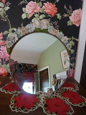 Vintage Art Deco Barbola Mirror Pretty Gesso Flowers 12'' high Easel Back