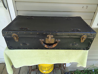 Antique Deco Suitcase Old Vintage1920s BRASS RIVOTS Metal Corners,Leather Straps