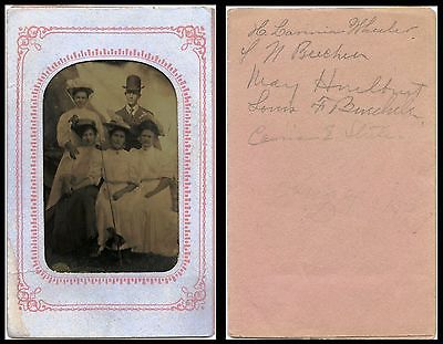 ANTIQUE TINTYPE PHOTO PORTRAIT OF A MAN WITH FOUR WOMEN