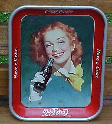 Title (ebay affiliate link): VINTAGE ca. 1950 Coca Cola Tray Red Headed Coke Girl Serving Tray
