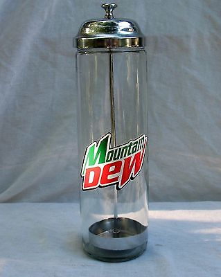 MOUNTAIN DEW CLEAR GLASS STRAW DISPENSER HOLDER CHROME LID 1992