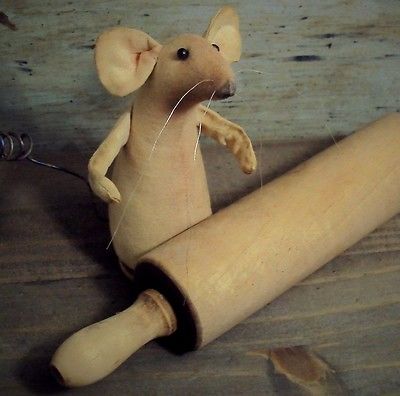 Title (ebay affiliate link): primitive folk art artist handcrafted mouse ornie doll wood rolling pin mice