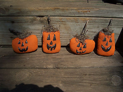 Primitive Halloween Orange Jack O Lantern Pumpkin Ornies Decor Set of 4