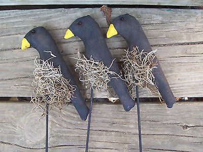 Primtive Grungy Black Crow Pokes Ornies Crock Fillers Decor
