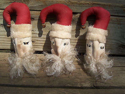 Primitive Grungy Christmas Santa Claus Ornies Bowl Fillers Decor Set Of 3