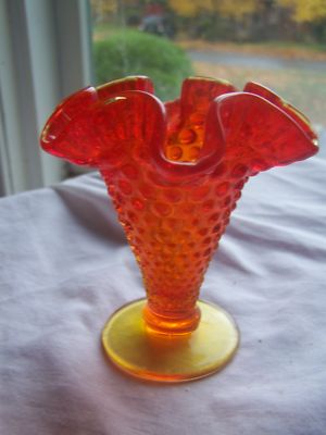 Title (ebay affiliate link): Depression Orange Glass Hobnail Fenton Miniature Vase