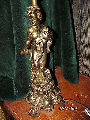 Antique Cherub Numbered Bronzed Metal Lamp Angelic Electric