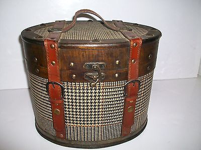 ANTIQUE VINTAGE STYLE WOODEN TRINKET BOX- OVAL SHAPED (10" TALL x 12" DIAMETER)