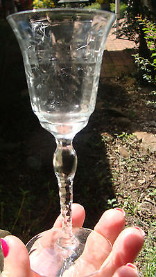 (2) VINTAGE ELEGANT STEMWARE WINE SHERRY GLASSES ETCHED BUBBLE STEM #10
