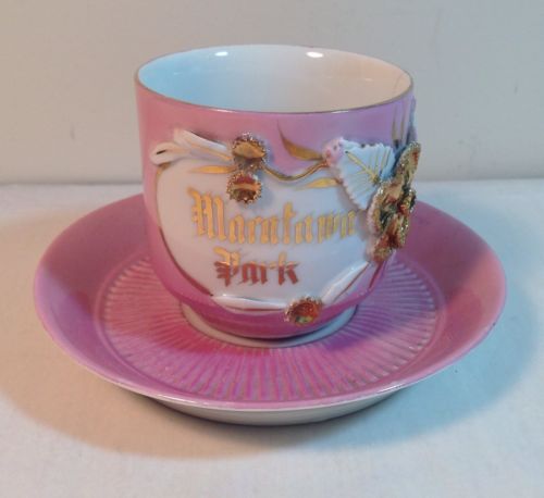 Title (ebay affiliate link): Victorian MACATAWA PARK, MI Lusterware TEACUP & SAUCER Souvenir of Summer Fun