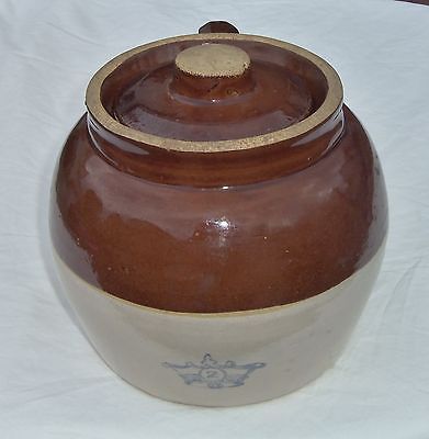 Robinson Ransbottom Stoneware Vintage 2 Qrt Bean Pot Crock Lid Blue Crown Mark