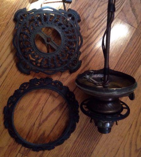 Antique Burner / Lamp Fount Banquet Gone w Wind & Iron Base & Rim - PARTS
