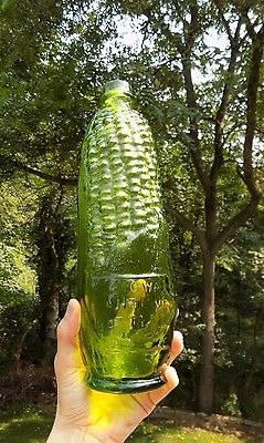 Title (ebay affiliate link): Rare Corn-Shaped Hand Blown Molded Green Glass Bottle Iowa Antique Bottlers 1970