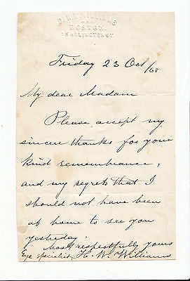 1868 Boston Letter Dr Henry W Williams, Emily Dickinson Eye Doctor