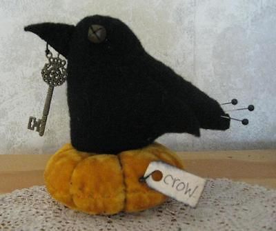 Title (ebay affiliate link): PRIMITIVE CROW BIRD KEY WOOL VELVET HALLOWEEN MAKE DO PIN CUSHION PFATT KEY