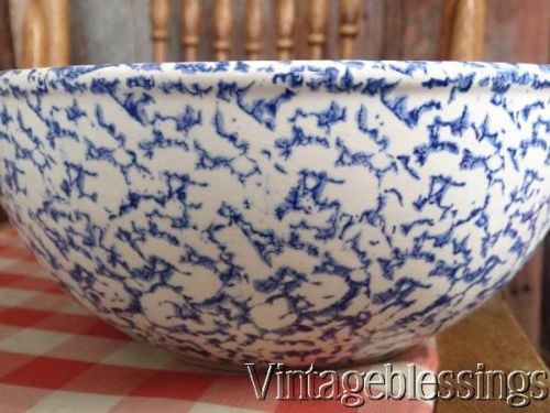 Large Antique Blue Splatterware Spongeware Bowl Farmhouse
