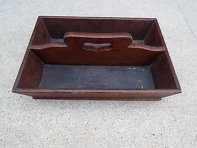 EARLY WALNUT DOVE TAIL UTENSIL CARRIER TOTE TRAY, 1860?