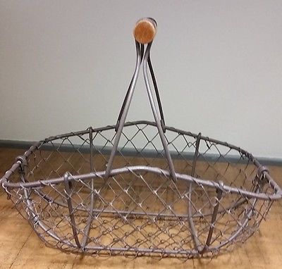 Title (ebay affiliate link): Small Oblong Chicken Wire Style Basket with Wood Handle