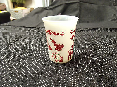 Set Of 2 Vintage Hazel Atlas Milk Glass Tumblers with Circus Theme Print Glasses