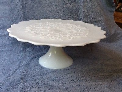 Title (ebay affiliate link): Vintage FENTON Milk Glass Cake Plate Spanish Lace Pattern
