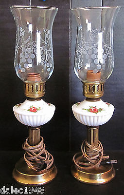 Title (ebay affiliate link): Vtg Pair 1930's Buffet Dresser Lamps Rose Milk Glass Etched Crystal Shades Works