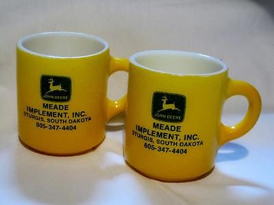 Title (ebay affiliate link): 2 JOHN DEERE Meade Implement Sturgis, SD Advertising Coffee Mugs Milkglass FAB