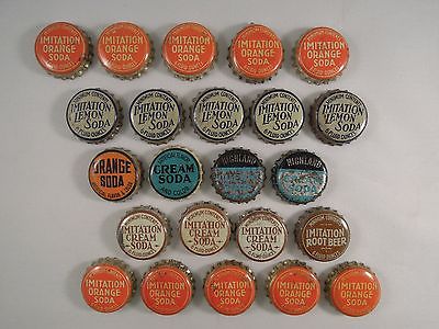 23 Vintage cork lined Soda Bottle Caps Highland Illinois Orange Cream Lemon