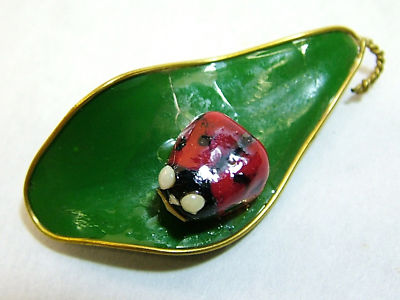 Title (ebay affiliate link): ANTIQUE LADY BUG ON LEAF HAND PAINTED ENAMEL GERMAN PIN