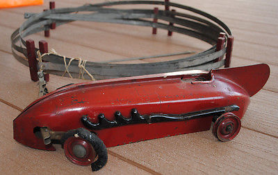 Antique KOKOMO SLOT CAR & 4 FOOT CIRCLE TRACK Vintage Pressed Steel Race Set