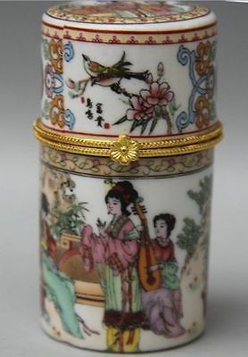 Chinese Porcelain Palace Belle play music Round Toothpick jewel coccoloba box