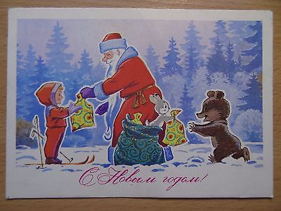 Title (ebay affiliate link): 1977 Russian soviet postcard USSR New Year Santa w/gifts for Boy Kid bear&rabbit
