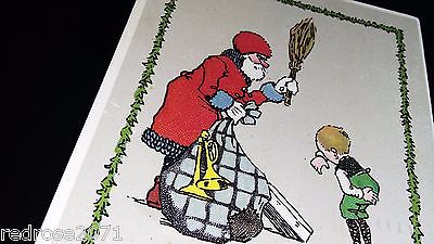 UNIQUE ANTIQUE OLD HOLIDAY CHRISTMAS postcard SANTA CLAUS w/ BROOM - BAD KID ?
